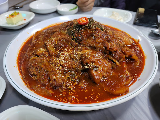 Read more시골에 한적한 식당입니다. 아저씨들 모임이 있어서 시끄러웠습니다. 가오리찜 매운맛 먹었습니다. 많이 매웠구요 ㅋ 맛은 제기준 강릉 고성생선찜이 더 맛있었습니다. 맛없는건아닌데 살짝 아쉬운정도? 찬은 여러가지인데 손갈게 없었고 맛또한없었습니다. 매운 음식과는 전혀 어울리지않는 찬이었네요.다른 손님상엔 달걀찜이 반찬으로 나왔는데...