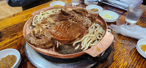 This restaurant is delicious! It specializes in marinated pork ribs. They are cooked on a copper grill over hot coals. What makes it even more delicious is that they serve it with noodles that cook on the side with all the juice and fat that runs off the grill! Remember to ask for more noodles before your meat is fully cooked as they need the juice from the meat to cook. They also offer things like bibimbap and naengmyeon. This place only offers floor seating, and no English menu is available. It is super busy, so don’t expect the most attentive service. It is summer now and it doesn’t have much ventilation, so it’s a little smokey and hot inside. The food is delicious, therefore none of those things stopped me from...