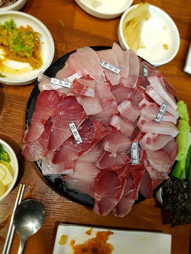 주차공간이 있는데 협소하고4~6대정도가능하고 인근에 주차할때없음 평일에는 시청 주차장에 돈주고 주차해야됨 시청 부근에 횟집이 여기밖에 없는듯 방어먹으러 갔는데 2인6만 3인8만 4인10만원임 일단 이집은 테이블이 많이 없음 그래서 예약제로 손님을 받고있음 방어맛은 보통이고 밑반찬도 많이는 없지만 나름 정갈하게 나온다 부족한 밑반찬 더 달라하면 잘주신다 단점은 벨이없어서 이모님 손들고 잘 불러야된다 사장님이 젊으시던데 나름 자기음식에대한 자부심도있고 SNS활용을 잘하시는거같다 나는 횟집가면 싫어하는것중 하나가 부위별로 이름 적힌거 회위에 올리는걸 별로 안좋아한다 이거 나중에 또 다른손님위에 올리고 계속 똑같은걸 쓰는거 같던데 재활용 안했으면 좋겠다 올겨울 날씨가 따뜻해서 그런지 입맛이 변했는지 방어가 유난히 맛이 없었는거 같다. 많은사람이 먹을때는 매천수산 시장에서 방어회...