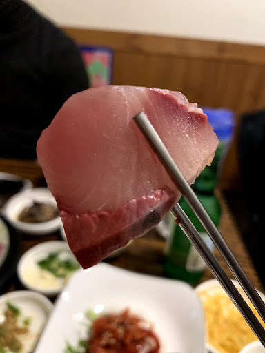 Read more자연산모듬회가 얼마전까지 35000원이었는데, 단시간에 4,5000으로 가격이 많이 올랐네요. 회종류는 비싼 줄가자미, 농어, 도다리, 노래미, 광어로 다양하게 맛볼수 있어 좋았으나, 회를 뜬 크기가 많이 작아 맛을 느끼기가 힘들어 아쉬웠네요. 줄가자미는 씨알 자체가 작은것이라 특유의 고소함이 많이 부족하였습니다. 차라리 살짝 숙성된 노래미가 감칠맛이 나서 좋았습니다. 전반적으로 음식은 깔끔했으나 남성 성인이 먹기에는 다소 아쉬운 양이었습니다. 물가가 오른부분은 인정하지만 4명이서 술값 포함해 20만원이 넘는 가격으로 본다면 뭔가 조금 아쉬운...