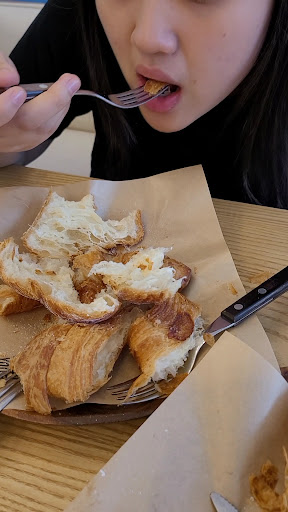 무더위에 방문한탓에 외부 정원투어가 다소 아쉬웠네요. 봄 가을 겨울이 기대되는 곳입니다. 산토리니 같은 백색과 파란색이 조화로운 분위기 덕분에 눈이 힐링되는곳이네요. 브런치는 가격대비 퀄리티와 양이 굿이네요. 브런치메뉴에 커피가 셋트라 더 매력적이고 커피가 엄청 맛있어요. 판매하는 빵은 포장해서 왔네요. 올리브치아바타가 함께 나온 뇨끼파스타의 치아바타는 너무 부드럽고 뇨끼의 쫀득함과 소스가 빵과도 조화굿. 크로크엔젤은 식빵 테두리가 다소 딱딱할수 있지만 함께 나오는 샐러드랑 잘 어우러져서 간이 좋으네요. 로제베이컨쉬림프리조또는 토마토베이스의 소스의 간이 느끼함을 잡기 딱좋은 적절한 메콤함이라 다른 브런치와 조화 굿. 아쉬운점은 테이블이 너무 밀집해 있고 탁자의 색상이 어울리지 않아서 분위기를 다운시키네요. 내부를 챙길 직원의 손길이 조금 필요해 보이네요. 트레이수납대가...