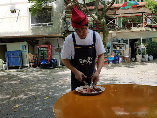 통상 겹 바비큐 오리 이렇게 먹었는데 개인적인 입맛으로는 오리, 돼지 껍질 부분이 너무 딱딱했습니다. 원래 이런 요리 인지는 제가 많이 먹어보지 못해서 잘 모르지만 살짝 너무 딱딱해서 턱 운동하는 줄 알았습니다 ㅋㅋㅋㅋ 그리고 역시 산 안에 있어서 그런지 밥 먹는데 벌레가 막 날아다니더라고요 음식 위에도 앉고 ㅠㅠ 사람 위에도 앉고 그래서 조금 불편했네요.. 부추전도 생각보다 별로였고 된장찌개에 밥 먹으니 먹을만했습니다. 그리고 머스터드를 달라고 하세요! 오리랑 찍어 먹으니 맛있네요 그래도 탁구도 있고 스카이 콩콩도 있고 애들은 즐길 거리가 조금 있으며 계곡은 위성으로 보니 저수지에서 나오는 물이라서 그런 거 깨끗하지 않았어요. 안 들어가시는 거 추천합니다. 그래도 서비스는 만족합니다!! 직원분들이 매우 친절하시네요 다시 갈 의향은 있지만...