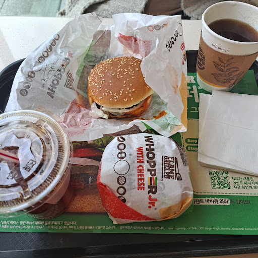 Read more맛이 일관적이고 주차가 편리합니다. 만원 이상부터 주차등록 가능합니다. 자체 화장실이 아닌 건물 화장실을 사용하는데 건물이 건물이다보니 깔끔하고 좋습니다. 매장이 그다지 넓은 편은 아니지만 여느 버거킹 매장이 그렇듯 포장과 배달 수요도 있다보니 점심 저녁 피크때 가도 갈때마다 자리가 없어서 못 앉는다는 느낌은 못 받았습니다. 다른 리뷰어도 그랬듯 주변에 산책하기도 좋습니다. 키오스크는 3대인데 한 대는 소형인데다 카운터 바로 옆이라 존재감이 별로 없음.... 그래서 2대로...