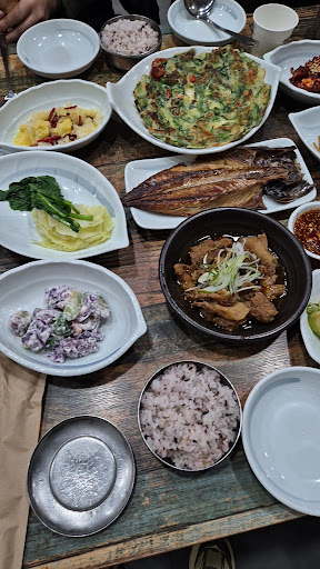 Read more가족들이랑 점심식사~13000원짜리로4인상시겻어요 차려진것만큼은 맛은그다지..고등어는 마니 비린고 된장찌게는 간이안맞는건지 밍밍하다고해야할까?그냥물에 된장넣고 바로끓엿다고나할까?멸치육수를 낸거같긴한데 별맛이... 반찬은 가오리무침이 그나마젤 먹을만햇고 굴전은 재료가주는 기본적인게잇으니..양념게장은 간장을 독특한맛이.. 차려지는건 많은거...