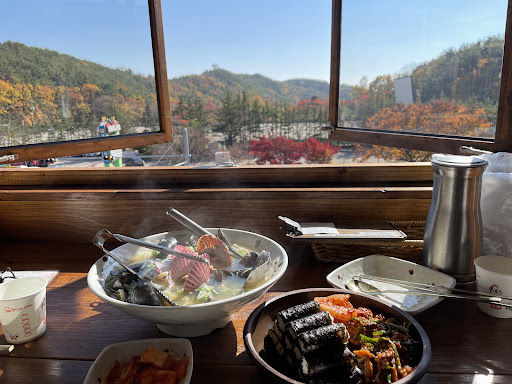 팔공산 산뷰를 보면서 식사가 가능해 인기가 많은 것도 있겠지만, 그보다 맛있는 왕해물칼국수와 육회비빔칼국수가 있기 때문에 더욱 인기 있는 게 아닌가 해요!