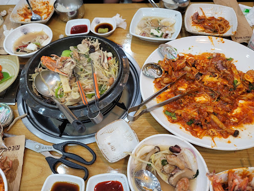 점심 13시정도에 도착. 비가 주룩주룩 내릴때 방문. 손님은 5테이블 정도 있었다. 두명이서 해물찜 소 와 낙지 탕탕 한접시 주문. 탕탕이가 먼저 나왔다. 칼이 안드는걸까. 잘린듯 안잘린듯 다 얼기설기 이어져 있어서 원래 이런가보다 하고 먹으니 맛있었다. 기본 조개탕 국물 시원. 반찬 가짓수가 예전보다 줄었지만 재료 퀄리티는 신선하고 좋다. 해물찜은 흔하게 먹던 매운맛이 아니라 어르신들이나 애기들 먹는 것처럼 간이 담백하고 슴슴했다. 대체로 이 집 모든 음식 간이 달지않고 짜지않고 맵지않고 담백한 인상을 받음. 후식 셀프 감주까지 담백. 볶음밥2개까지 냠냠 후 9만 2천원 정도 계산. 아 그냥 해물탕 먹고 해물찜은 해궁찜 가거나 다른 곳을 찾아야겠다고 혼자 결심. 돈이 아깝지 않은 재료의 신선함 퀄리티였지만 매콤하고 자극적인 경상도식 간을 한 해물찜을 원한다면 다른 곳을 찾아보자. 여긴 서울에서 음식...
