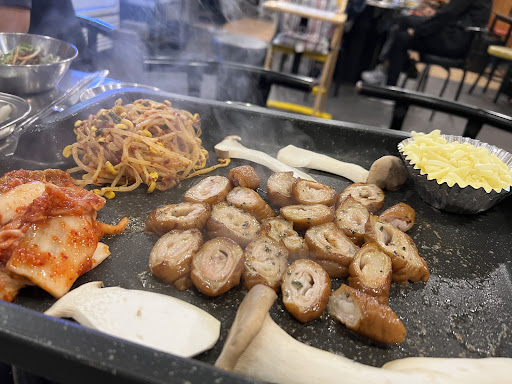 평일 오후8시30분 방문 주차는 매장앞 도로변 무료노상주차 가능 저녁시간때에는 주차된 차량이 많아서 도로변 빈공간에 주차하면됨 웨이팅은 없었으며 전체 테이블수의 절반정도 여유가 있었음 3인셋트메뉴 (삼겹살+막창+김치말이국수+된장찌게)와 미나리 주문함 돌판에 삶은 고사리와 은박에 담긴 치즈가 기본구성이며 셀프코너에서 버섯과 고무마 등을 그릇에 담아와서 막창과 삼겹살과 함께 구워먹으면 됨 막창은 한방약재에 숙성한듯 잡내가 없었으며 막장에 푹찍어서 미나리와 함께 쌈야채에 쌈싸먹으니 맛있었음 특히 녹은 치즈와 함께 먹거나 카레가루에 묻혀 먹으니 더욱 맛있었어요 삼겹살은 생삼겹살이므로 취향껏 잘구워 먹으면 될듯함 삼겹살보다는 막창이 더 맛있어서 불막창을 추가 주문하였는데 역시 괜찮았어요 김치말이국수는 특별히 맛있다기보다는 심심한 맛이었고 된장찌게는 된장밥으로 먹으니 좋았어요 셋트메뉴 구성에 김치말이국수보다는 볶음밥이 있었다면 더 좋았을듯합니다. 푸짐한 기본찬의 구성과 다양한 소스 그리고 반찬 셀프코너와 커피 셀프코너 등의 가성비와 맛있는 한방막창을 맛볼수 있어 좋았으며 다음에는 꼭...