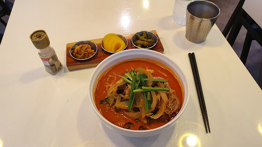 사골 육수 베이스의 차돌박이가 올려진 짬뽕을 메인으로 하는 중식당. 경북대 기숙사 쪽문 근처에 위치하여 학생들이 많이 찾는 곳입니다. 화이트톤의 깔끔한 분위기에 오너의 세심한 손길이 곳곳에서 느껴졌습니다.