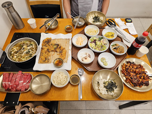 쭈꾸미 샤브샤브 조합. 메뉴 구성도 맛도 너무 만족스러웠습니다. 불향 가득 매콤한 쭈꾸미는 밥도둑 그 자체였고, 진한 육수에 고기 넣어 끓인 샤브샤브는 푸짐한 재료 뿐 아니라 담백하고 깊은 국물까지 너무 맛있었습니다. 한정식 스타일의 한상 차림으로 나오는 찬들도 하나 같이 맛있었고요. 셀프바에 보리밥, 무생채, 콩나물까지 준비돼 있어 쭈꾸미 비빔밥으로 먹으면 그냥 찐 한상! 아이용 돈까스도 고기 도톰하고 바삭해서 아이가 정말 잘 먹었어요. 다녀오자마자 엄마한테 모임장소로 좋은 곳이라고 추천해드렸네요. 맛, 양, 분위기 모두 만족!...