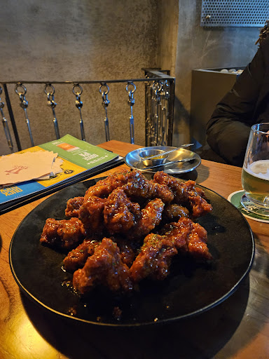 Great Bar for Westerners. Just up stairs at a road junction. Google Streetview is out of date, my pics show it as I left at 11pm. We visited on a Monday night in March 2023. Large selection of tap beers plus bottles. Beer sizes vary, not all poured in 'usual' sizes, check the menu carefully. The food was very nice. I had Buffalo Wings & Fries, my friends had Fish & Chips, all very good. Portions suit one person each, not sharers as many Korean restaurants serve. Friendly, fast service. Beer is a bit expensive but worth it. Free Heiniken glass as a gift from the lady...