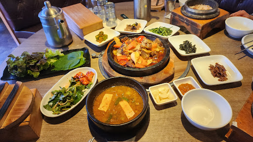 The price is great, atmosphere is awesome & clean, the food, beef bibimbob & bibim cold noodle, that we ordered is very tasty. The parking lot is behind...