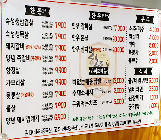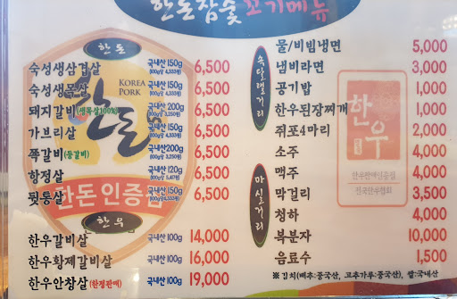 Read more월서중학교뒷편 대백마트옆에 있는집으로 대백마트에 주차장이용이 가능하다 이집은 그전에도 계속 고기집이었는데 간판이 몇번 바뀌었고 지금현재 이집이 가장 장사가 잘되는거 같다. 우선 한우.한돈을 판매하고 조금만하지만 어린이놀이터가 있다.이집은 참숯을 사용하고 밑반찬은 명이나물 옥수수콘 무절임 재래기 미역국이나온다 재래기는 별로고 미역국은 맛없다 고기는 삼겹살 목살150g에 6500원이다 국내산이고 맛도 괜찮다 가격이 착하다 양념갈비도 (국내산목심)200g에6500원 이것도 괜찮다 소 갈비살100g13000원 이것도 괜찮다 가격이 참 착하다 공기밥도 검정쌀이 섞여있고 쌀이 일반 음식점 쌀보다괜찮은거 같다 이집은 물을 헛개수 끓인물을준다 구수하고 맛있다 주류중 청하를4000원에 판다 이것 또한 저렴함 항상 사람이 많고 직원들도 친절하고 값싸고질좋은...