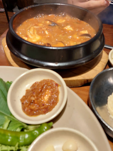 This place has been here for a long time and has earned it's place on the restaurant street. Renovations a few years ago made it more comfortable and modern. It's a little expensive for pork ribs, but it's not too expensive. It's not really a fancy place. So the cost might not seem worth it compared to others. But food is very good and there are plenty of sides served with the meat. They also cook the meat for you. While you might prefer a cheaper price for less service it does make things a little more worth the cost. The soup served with the rice at the end if the meal is very rich and has lots of seafood in it. Easy to reach by bus or taxi. There is some parking available. You can walk there from the line 3...