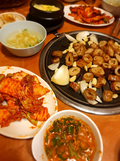 번화가막창집 줄 서있다가 현지인께서 요기루 가자고 해서 갔어요. 여기도 대기 10분정도 했구요. 자리가 살짝 협소해요. 현지인 맛집이예용 ㅎ 8명이서 막창10인분 갈비살 5인분정도 주문했구요. 막창구워도 냄새 1도 안나요. 미리 삶아서 나온거라 살짝만 구워서 먹어도 된다지만 저는 바삭한 식감 좋아해서 바삭하게 구웠는데도 부드러워요. 그리고 갈비살도 주문해 먹었는데 맛있어요!!! 그라그 겉절이 특이해요. 초장에 무친스탈인데 느끼할때 한점씩 먹어주면...