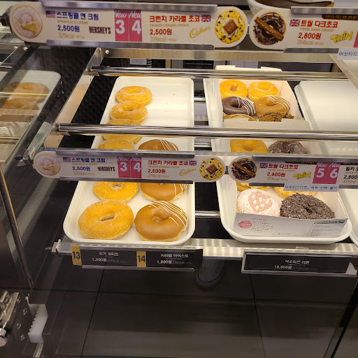 It's Krispy Kreme. You get exactly what you expect. I would give it 5 stars if they updated their interior. They haven't changed their interior in years and they don't keep it very clean either. But their original doughnuts are exactly what you want. I'm not sure what time they are made so they aren't always hot and fresh when you get there. Their other doughnuts are good too but it's all about the original. The coffee is good too but nothing special. As is it is tucked into the corner of the basement of the mall. So it might be hard to find. But if you go to the Kyobo building and go to the basement you can enter the underground mall. Then you turn left and walk maybe 10 meters. Then you will see the department store basement on your right. It's inside there, you...