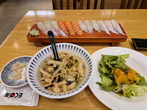 Read more대구에서 놀고 복귀하기 전에 들린 곳 일행이 검색하다가 대구에서 평이 좋은 곳이라고 해서 방문함 우리는 세트 1이랑 본인이 참치가 먹고 싶어서 참치뱃살 초밥도 주문함 매장은 손님들이 많았고 깔끔했습니다 기본으로 우동, 샐러드가 나오는데요 맛은 딱 그냥 주니까 먹는 정도 어차피 메인이 아니니까 큰 의미는 없는 거 같아요 대신 먹고 달라고 하면 더 준다고 일하시는 분이 얘기하심 초밥은 가성비가 좋았고 신선했어요 근데 참치초밥은 참치는 좋았지만 밥이 설익은 거 같았어요 그래서 참치랑 조화가 어울리지를 못해서 아쉬웠어요 세트 초밥이랑 밥 식감이 틀렸음 그래도 전반적으로 괜찮은 곳 같네요 별은 3.5 생맥주랑...
