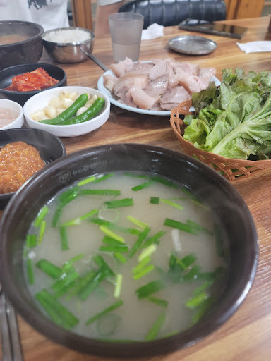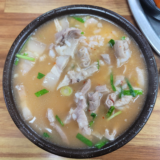 That's some good doeji gukbap. It's filled to the brim with boiled park. Probably one of the highest calories-to-won ratio, and not empty calories, that you can find. Go when you're really hungry! You can also pick leaner meat (살코기국밥) if you don't want all the fat. Parking at peak lunch and dinner time is risky, but if you don't mind parking on the street (technically illegal and it may be more strongly enforced...