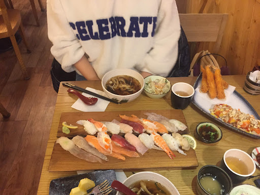 Fair prices (13000 KRW for 10 salmon sushi), delicious Sushis : a lot of salmon like seriously they don't rob you. Waiters / owners are pretty nice too ( they bring you a free little drink and you can ask for infinite water). Tenpuras are great and the Udon they give you for ordering 10 Sushi is good too. I would recommend it although there might be some cheaper...