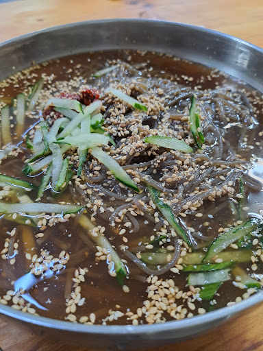 Small little family-owned restaurant. We ordered the steamed dumplings, cold acorn noodles in soup (which consist of noodles that are made of acorn jelly, rather than actual acorn jelly) and ox head soup. These were complemented with side dishes—cubed radish kimchi and preserved radish leaves. The steamed dumplings were unappealing in presentation and did not taste any better. The same could be said for the side dishes. The cold acorn noodles in soup were nice overall, as the noodle texture was good, although the soup was a bit too sweet for my liking. The ox head soup was just average in taste. The interior of the store was very simple and unadorned; without any frills, looking more like the interior of a house. The staff were not too friendly either. Overall, this restaurant ends up not being very satisfying to me, although the cold acorn noodles in soup were nice. Not a place that I would recommend or am...