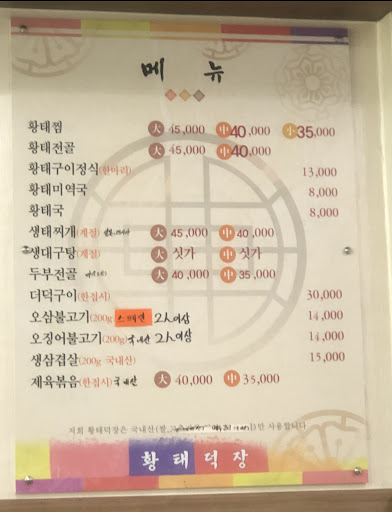 Hwangtae Hoegwan (Dried Pollack Restaurant)19 Nunmaeul-gil, Daegwallyeong-myeon, Pyeongchang-gun, Gangwon-do, South Korea