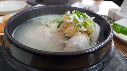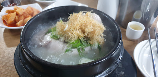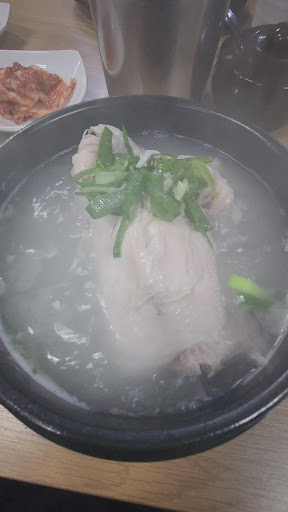 I ordered the ginseng chicken soup. It was a little more expensive, but the soup, rice and chicken in the one bowl tasted delicious! They also keep salt on the table and serve an assortment of side dishes to go with the meal.