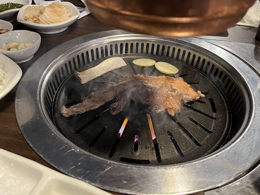 We had a fantastic experience at this small BBQ restaurant in 둔산동, which stood out for its commitment to quality by offering only the top five cuts of meat: 삼겹살 (pork belly), 목살 (pork neck), 갈매기살 (skirt meat, their signature cut), 차돌박이 (brisket), and 눈꽃살 (premium marbled beef). Among these, we especially enjoyed the 갈매기살, which was impressively lean yet satisfyingly chewy, offering a great balance of texture and flavor. The restaurant also had a unique touch with its house-made dipping sauce and grilled 백김치 (white kimchi), which added a rich, tangy contrast to the smoky, savory meat. To complement our meal, we ordered 계란찜 (steamed egg), which was light, fluffy, and a perfect side dish to balance out the heavier grilled meats.