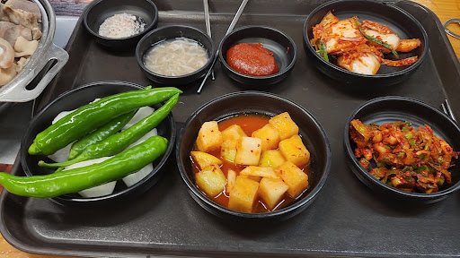 반찬에 기본으로 나오는 고추는 맵찔이가 먹기에는 너무 매웠습니다. 게다가 쌈장이 아니라 고추장에 찍어먹어서 더욱 맵게 느껴졌습니다. 반찬은 모자라면 셀프코너에서 더 가져올 수 있습니다.