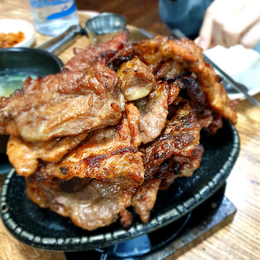 Read more저녁7시에 방문 테이블이 거의 차 있었다. 미리 예약하고 오시는 분들도 있었다. 홀이 두군데로 나눠져 있었다. 돼지갈비2인을 주문했다. 밑반찬이 신속하게 나와 요기를 하며 기다렸지만, 갈비가 나오는 시간이 꾀 걸렸다. 갈비는 겹겹이 높이 쌓아져서 철판에 셋팅 되었다. 갈비는 바로 먹을 수 있게 완벽히 구워졌고, 불향이 진하게 났다. 고기도 생각보다 부드러웠고, 짜지 않은 갈비양념에 부추겉절이와 잘어울렸다.