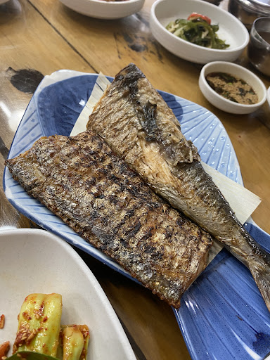 사진으로눈 비교가 안되는데 생선이 아주 컸습니다. 동네에 있으면 자주올것 같은 집입니다. 왼쪽이 갈치, 오른쪽이 삼치. 둘다 촉촉하게 잘 구워졌습니다. 아쉬웠다면 간이 너무 약해 심심했습니다. 같이 주신 간장도 너무 안짜서 먹는데 약간 감칠맛이 부족했습니다. 실내가 넓고 손님이 많은 것에 비해 음식 나오는...