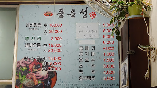 별 3.5개 주고싶은집. 이유는 해산물의 신선도가 떨어지기 때문이다. 짬뽕에 해산물 신선도가 떨어지면 이게 음식인가 싶다. 나는 평점을 테러하는 사람은 아니고 지극히 개인적인 입맛에 평가를 한다. 일요일 6시30에 도착하여, 정확히 1시간20분 웨이팅 도란도란 이야기 하다보면 시간이야 금방간다 배고팠다 무척이나, 짬뽕 중 16000원 탕수육 소 15000원 2명이서 주문하게되었고, 면은 냄비짬뽕에 처음부터 들어가지 않으니 먹다가 추가를 하라고 하셨다 조개종류는 조금 더 익혀서 먹으면된다고 하셨고 홍합은 바로 먹어도 된다하여 먹어보았는데, 흠 ,,,, 홍합 상태가 그닥 좋지않다. 냄새가 매우났다, 직원을 불러 작은목소리로 상태가 좋지않다고 말씀을 드렸고, 주방장에게 이것을 알린것같다 1분뒤 그에대한 답변은 어제 받은홍합이며,산란기여서 그렇다고 한다 라는 답변, 식당에서는 홍합 상태가 어찌되었던 산란기였던, 업주측에서도 알고있었다라는것이다. 산란기때 홍합은 맛이 떨어지며, 삭시토신 성분때문에 독소가 있기때문에 부작용이 생기니 먹지 않는게 좋다. 물론 모르고 그러셨다고 한들 이번기회로 알고있으셨음 한다. 물론 10명중에 1명의 말은 믿음이 안갈수도 있다고 생각한다. 사람이 먹는것인데 조금더 신경을 써주셨으면 하는 마음이다 ... 홍합을 다 버리고 난후 동죽을 5개이상 넣어주셨다. 우리는 마무말 없이 먹기만 했다 16000원짜리 짬뽕은 해물탕인가 짬뽕탕인가 싶었다. 고춧가루 팍팍들어간 칼칼한맛,, 2천원에 면추가를 했다. 음 ..... 글쎄.... 이게 무슨맛이지... 밥은 그냥 서비스로 주신다하셔서 두수저 정도 얻게되었다. 이맛이다 국물에 밥을 말아먹어야했다 굿..추천....