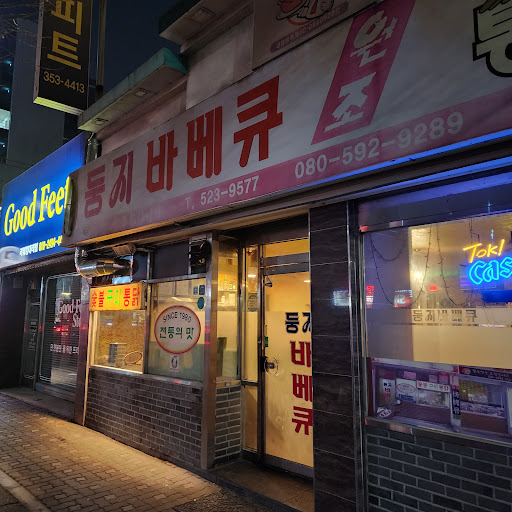 둥지바베큐는 대전 용문동에 있는 치킨전문점이다. 30년이 넘는 전통을 자랑하는 집이다. 상표와 서비스 등록 출원이 되어있는 곳이다. 메뉴는 참숯바베큐와 참숯소금구이, 참숯불바베큐가 있다. 국내산 생닭과 참숯만을 고집하는 집이라고 한다. 오비 생맥주가 맛있기로 유명한 집이다. 술과 치킨을 주문하면 기본 찬으로 샐러드가 나온다. 참숯 그릴 위에 깨끗하게 손질한 생닭을 올리고 1차 초벌구이를 해 생닭의 기름기를 제거한 뒤 한번 더 구워낸 바베큐다. 포크가 두개가 나온다. 닭은 양손으로...