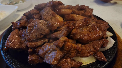 2024.8. 대전에서는 꽤 유명하고 오래된 갈비구이집. 생갈비를 자리에서 구워먹는 형태가 아닌, 미리 구워져서 나오는 갈비를 먹는 형태. 뜨거운 무쇠철판 바닥에 양파를 깔고 미리 구워진 갈비를 푸짐하게 얹어서 나옴. 고기맛은 뭔가 이 집만의 독특한 맛이 있으나 개인적으로는 그렇다고 뭔가 맛있다는 느낌은 글쎄... 그 외 밑반찬이나 적절한 식사를 하기에는 괜찮은 편. 사람이 엄청 많아서 정신없으며, 한쪽 고기굽는 주방에서는 고기만 열심히 굽고있는 사람이 있음. 1층은 주차장, 2층 올라가는 계단이 좁아서 드나드는 손님들과 교차통행하기 불편한 점이 있으며 홀은 상당히 넓고 많은 사람들로 정신없고 한쪽 주방에서는 고기를 굽는 연기로 실내가 탁한 느낌이 듦. 의자는 앉으면 기름기때문인지 미끌한 느낌이 듬. 후식으로 먹는 된장찌개, 물냉면, 비빔냉면, 잔치국수가 있으며 된장찌개나 냉면류는 맛있다고 하기엔 뭔가 좀 부족함.. 잔치국수는 면을 덜...