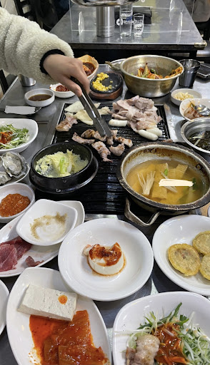 There are many various side dish. Meat is thick and delicious. Location is not so good, but it is worth...