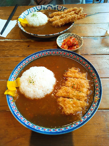 일행 추천으로 간 곳인데 카레 평소에 그닥이지만 매운맛 조절있대서 3단계 시켰음. 매콤함. 다음에 4단계 도전예정. 불닭보다 안맵고 매콤하고 얼얼하게 은은하게 올라오는 매운맛임. 혀를 따끔허게 하는건 아니고 빈속에 먹으면 아릴지도... 토핑은 각자 새우튀김 모짜렐라튀김 돈까스튀김 올렸음. 사이드는 단무지와 김치뿐(중국산) 음료수까지 각자 시켜서 맛있게 먹고나옴.