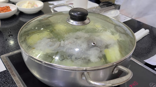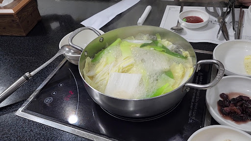 2인분 냄비에 들어간 낙지는 총 다섯 마리였습니다. 그중 세 마리는 머리에 알이 가득차 있었습니다. 낙지가 우러난 육수는 감칠맛이 좋았고, 낙지와 함께 끓인 박은 쫄깃한 식감이었습니다.