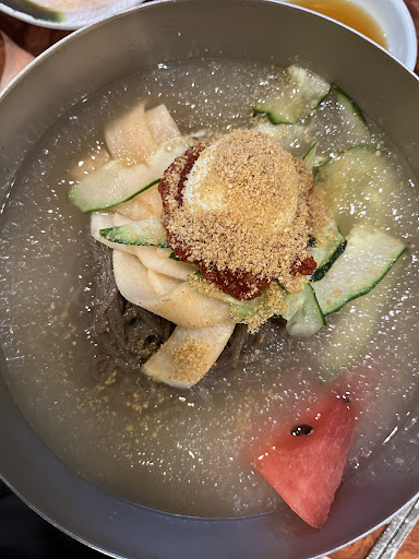 Read moreBest 냉면 in 대전 and top-tier for the best in Korea. Watermelon in the broth instead of Korean pear. There were really large servings, so it was well-worth the price. There's a kids playroom with trampolines and a slide plus cctv for parents to keep an eye on their kids. This place has been around for a long time...