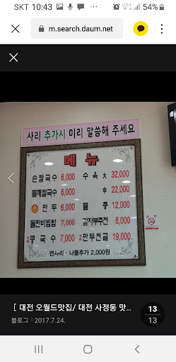 손칼국수만 먹어봐서 다른메뉴맛은 모르지만 일단 손칼국수 국물과 면이 맛있어여 반찬도 맛있는거보면 다른 메뉴도 맛날거같아여