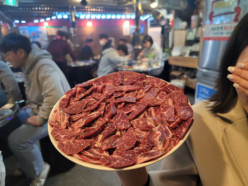 회사 후배가 저녁에 술 한잔 하자해서 찾아간 집. 오정동 복잡한 곳을 택시타고 내리니 허름하고 좁은 공간에 다닥다닥 붙은 테이블. 연탄이 모락모락 피는 가운데 노포의 냄새가 ^^;;. 소고기 한판 2인 3만원. 3인 5만원, 4인 6만원. 5인 8만원. 닭 염통 꼬지가 서비스로 Start하며 굽는 미쿡소는 냄새도 없고 맛있네요. 소주도 4천원. 열무국수 (5천원) 먹었는데 입가심으로 굿♡. 단체는 가기 힘들 듯....