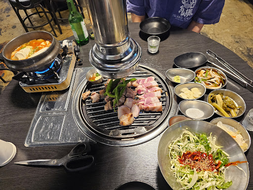 A must-visit restaurant when in Daejeon. Whether you’re dining with family or enjoying a night out with friends, this place suits any occasion. The pork was outstanding—rich in flavor, with a remarkable texture and salinity that made every bite satisfying without the need for additional sauces. I highly recommend the mok-sal (목살), which was noticeably superior to offerings at nearby restaurants. The soft tofu stew served on the side paired beautifully with the meat, adding warmth and depth to the meal. We ended with a shared bowl of dulgirum makguksu, which was the perfect finishing touch to a memorable Korean...