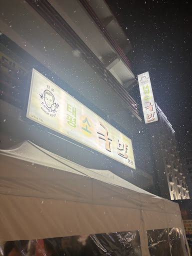Read more대전에 한 달만에 내려가서 유성온천역 근처 호텔인터시티 체크인 하고 아내가 지인에게 들었던 대전 유성구 국밥맛집인 태평소국밥 방문. 가는 길에 눈이 펑펑 내려서 길이 많이 미끄러웠는데 호텔에서는 10분 거리. 이미 태평소국밥 바깥 대기소에는 10여 명의 사람들이 기다리고 있음.