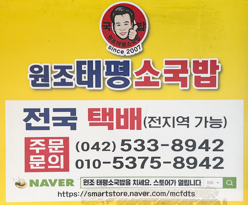 대전광역시 중구 태평동 375-18(태평로116)에 위치힌 원조태평소국밥 본점은 2007년에 개업했으며 무려 24시간 영업을 한다. 필자가 대전지역에 일이 있어 성심X 갔다가 관광을 시작하려고 24시간 영업하는 식당을 찾았는데 유명한 곳이 두 군데 있었다. 한 군데는 오문x순대국밥집이고 또 다른 장소는 원조태평소국밥 본점이다. 메뉴의 가격은 2025년 5월 기준이다.