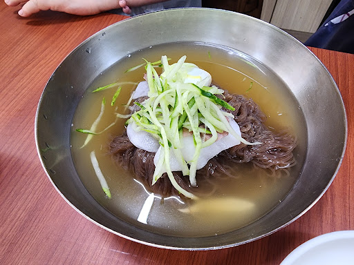 Read more물냉1, 비냉1를 주문했습니다. 김치비빔도 궁금했지만... 양도 많아보이고, 가격도 비싸서 냉면만 먹었습니다. 면은 메밀보다는 고구마전분 비율이 많아 보였고, 양념은 살짝 아쉬웠지만 계속 먹으니 금방 적응되었습니다. 온육수가 간간하니 맛있었습니다~^^ 둘 중 하나를...