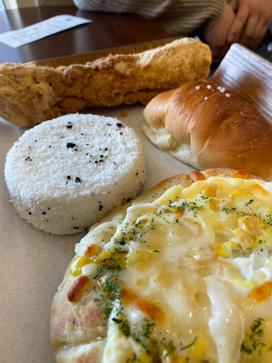 먼저 하얀빵(이름을 잘 모르겠음), 겉은 마시멜로고 속은 갸또 느낌이다. 겉쫀속촉이다. 그리고 겉에는 코코넛가루도 뿌려져있어서 나한테는 좀 신기한 식감이었다. 과하게 달진 않고 정말 맛있었다. 마시멜로 코팅을 꼭 느껴보시길! 풍자픽인 양파치즈빵은 그냥 기타 빵집의 빵들하고 비슷했다. 왜 풍자가 그렇게 좋아했는지는 모르겠다. 그래도 파바같은 곳보다는 크림이 더 고급지다는 느낌은 있었다. 그냥 단짠 정석의 맛. 소금빵은 그냥 soso. 마지막으로는 저 기다란 빵. 와우 내 최애였음. 겉바속촉… 겉에는 곡물크런치같은 게 있고 속에는 엄청 달달한 크림과 인절미같은 떡 식감이 씹히는데 고소달달한 그 맛이 정말 좋았음. 거기다가 바삭한 식감까지 쵝오….!