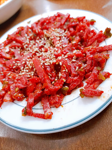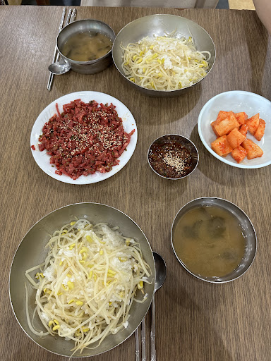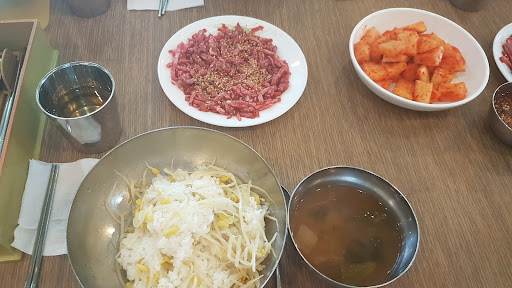 We visited this humble restaurant renowned as well a Bibimbap with row sliced beef but could not feel any special tastes of that as all expectations do. Especially, we were not able to be treated with certain services as customs since we could not get any information before ordering our menu on the table. No one tells us who first visited here on the menu. I don't want to recommend you to visit this shop to try this. Of course, they don't have any parking...