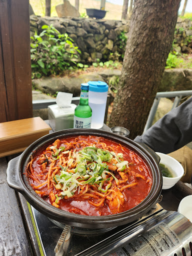 소라찜 작은거랑 스파게티 주문해서 먹었습니다 오전 11시부터 오픈인데 그전부터 손님들 대기가 ㅎㄷㄷ...주차 관리해 주시는 아주머니 포스 있게 플렉스 해주시네요 입구에 비해 안이 생각보다 넓고 테이블도 많으며 안쪽 뒤로도 외부 식사가 가능하도로 잘 되어 있어 좋습니다 밖에서 힐링하게 먹을려고 했지만 이른 오전이라 좀 추워서 안에서 식사아쉽ㅜ맛은 저는 갠적으로 소라찜 양념이 좀 겉돈다는 느낌으로 그렇게 달지는 않고 칼칼하게 고춧가루 맛이 느껴지는 맵기 정돈데 고기랑 소라는 맛있으며 전날 과음하신분들은 해장하시기에 좋음..ㅎ(공기밥 같이 드셔야 대한민국 사람인건 안비밀^^)거의 다 먹을때쯤 치즈 스파게티 시켜 양념이랑 같이 먹으니깐 괜찮았습니다 알바,직원들이 많은데 그중에 일하시는 아주머니 직원분...