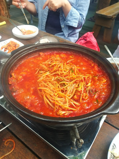 수저 설거지 제대로 되어있지않아 고춧가루 묻어있고 그릇에도 얼룩이 많으며 바닥에 강아지들이 밖에서 돌아다니다 손님들 식사하는 자리에 그대로 들어와서 흙탕물바닥이고 바닥에는 음식찌꺼기에 돌부리도 떨어져 있고 청소가 부족하여 더럽습니다.