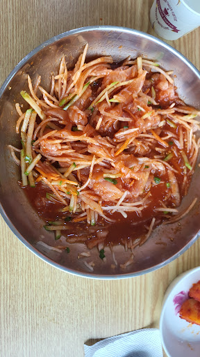 Read more물회라는 음식에 거부감이 있어서 못먹음. 제주자리물회 시켰다가 냉국에 대가리만 뗀 물고기가 오이랑 동동 떠다니는 비주얼에 충격받아서 못먹어서 여기에서는 다들 물회 시키는데 나만 회밥을 시켜먹음. 상차려지면서 바로 후회함. 물회랑 회밥은 똑같은데 물회에만 살얼음 동동 육수 주는데 그게 엄청 맛있음 재료는 똑같음. 꼭 물회 드세요. 생선회도 잘게 썰어서 주고 맛있어요. 밑반찬도 꼬시래기랑 감자가 너무 맛있어서 리필 세번 시켜먹어서 미안한데 친절하게 다시 주셨어요. 초딩입맛이라 물회 못먹는데...