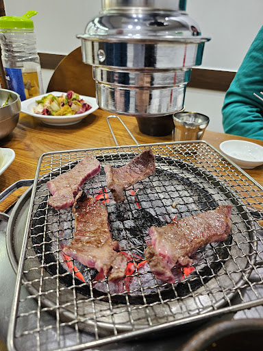 Read more평창 가는 길에 한우 먹고 싶어서 들른 식당입니다. 가장 맛있는 고기는 누군가 사주는 한우인 것 같습니다 😊 입구에 경사로가 있어서 휠체어, 유모차를 타고도 편하게 이용할 수 있습니다. 실내는 매우 넓고 테이블이 여유롭게 배치되어 있어서 복잡하지 않고 편안함을 느낄수 있었습니다. 오른편에 장작을 떼서 따뜻하게 쉴 수 있는 공간이 있어서 더 좋았어요. 비싸도 한우는 역시 입에서 살살 녹을만큼 맛있었고 추가로 주문한 갈비탕도 맛있었습니다. 맛, 서비스, 분위기 모두...