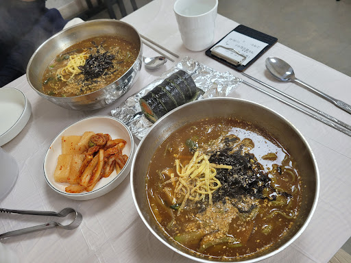 개두릅이 들어서 씁쓸한 맛이 났지만 특색있네요~ 애기는 해물 칼국수에 밥도 말아서 야무지게 먹었어요~^^* 어른은 장칼국수를 먹었는데 국물이 추어탕 갔고 개두릅이 씹히니 더욱 신기했어요^^ 맛 좋았습니다 전체적 실내도 깨끗했어요^^* 주인분도 친절했구요^^ 우리가 갔을때 평일 2번째 손님이라 조금 한가했는데 얼마안되서 손님으로 찼습니다 입구는 2군데...
