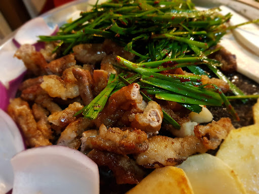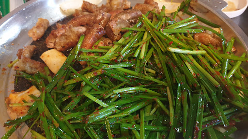 곱창 만구천원 막창 만구천원 소 잡는날만 영업을 하시는 아주 양심적인 사장님 (일반적으로 도축장은 일요일은 안하기 때문에 일요일에도 영업하는 곱창집은 별로라고 생각이 듬) 테이블이 4개고 곱창이 괜찮은 날 영업을 하시기 때문에 미리 전화로 예약을 하는것이 좋다. 곱창을 주문하지 않아도 막창이 없었기 때문에 가게에 들어서자마자 사장님께서 인원수에 맞춰 굽기 시작하신다. 구워나온 곱창은 사장님께서 돌판 위에서 잘라주신다. 바로 먹어도 되고 첫 점은 기름장과 먹어보라고 추천하신다. 곱창 기름에 부추, 양파, 마늘, 버섯을 익혀 먹는다. 곱이 가득 차 있고 마늘도 박혀있다. 구운 마늘과 구운 감자와 곱의 식감이 비슷하지만 다른 세개의 풍미가 입안에서 고루 섞인다. 소주 일잔 안하면 불법이다. 느끼하다면 마늘 장아찌나 앙념장에 있는 청양고추를 집어 먹어도 좋다. 하지만 식사 내내 입안 가득 묵직한 느끼함을 유지하고 싶을만큼 맛있다. 그리고 양파 쌈 등 바리에이션이 다양하기 때문에 지루할 틈이 없다. 결국 둘이 3인분 먹고 볶음밥 하나에 된장찌개 하나 먹었다. 볶음밥이 밍밍하다 생각이 들 수 있으나 곱 기름위에서 숟가락으로 눌러 구우면 무한으로 들어간다. 또 먹고...